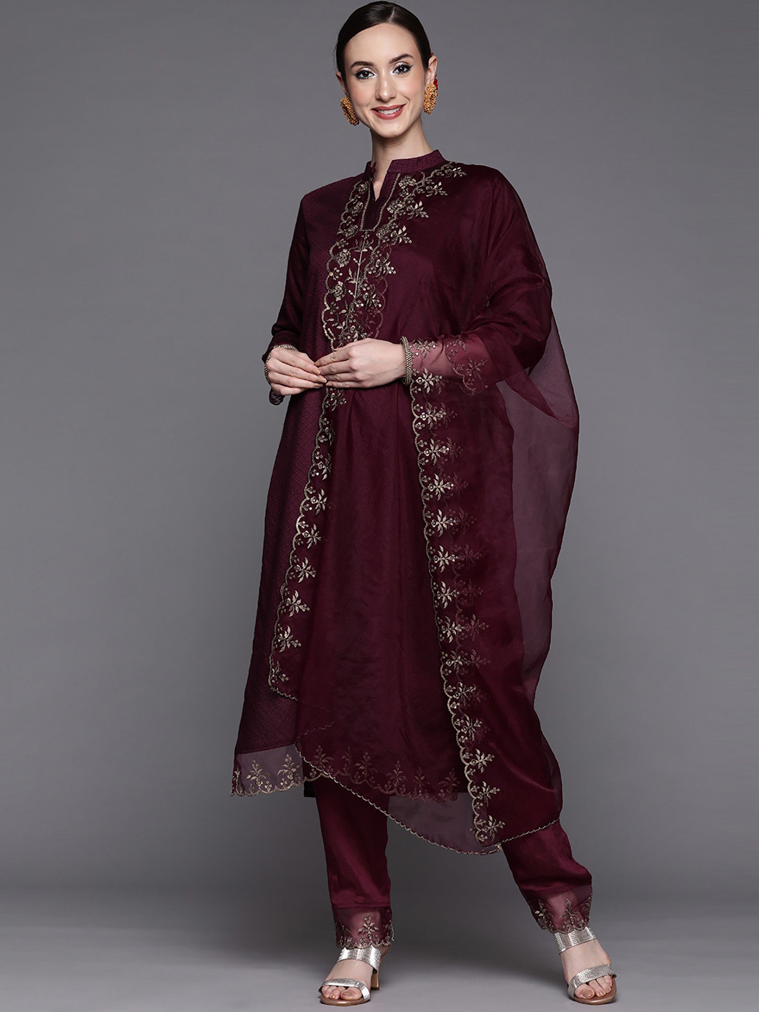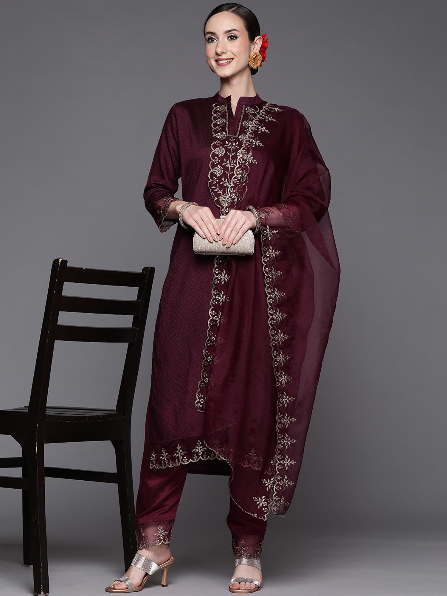 Add a touch of elegance to your wardrobe with this women’s Wine rayon kurti set with embroidery work, paired with a matching bottom and contrasting Wine dupatta. Made from premium viscose rayon slub fabric, this ethnic suit set combines comfort with festive charm, making it ideal for parties, traditional events, and special occasions.